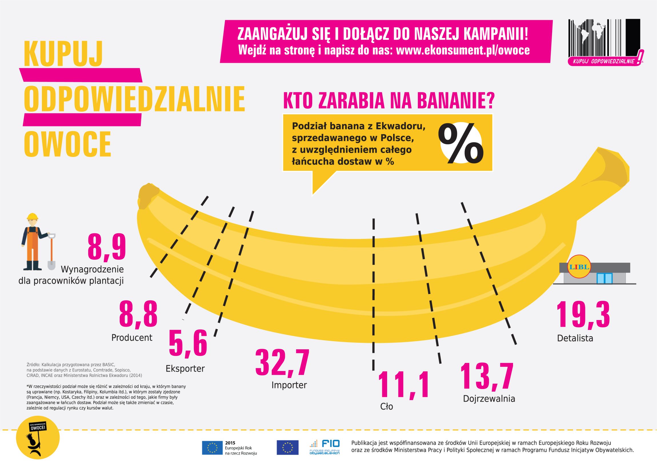 Projekt "Kupuj Odpowiedzialnie Owoce" jest współfinansowany ze środków Unii Europejskiej oraz programu polskiej współpracy rozwojowej Ministerstwa Spraw Zagranicznych RP. Za treści na stronie odpowiada Fundacja Kupuj Odpowiedzialnie, poglądy na niej wyrażone niekoniecznie odzwierciedlają oficjalne stanowisko Unii Europejskiej ani nie mogą być utożsamiane z oficjalnym stanowiskiem Ministerstwa Spraw Zagranicznych RP.