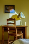 Ten kameralny, drewniany dom noclegowy oferuje pięć przytulnych pokoi z widokiem na las lub jezioro. Pokoje są przestronne, jasne i wyposażone w łazienki. Na piętrze dostępna jest lodówka, a na parterze znajduje się duży salon z kominkiem i sprzętem audio-wizualnym. Urokliwa jadalnia z panoramicznym widokiem na jezioro oraz przestronny taras zapraszają do relaksu. To doskonałe miejsce na rodzinny wypoczynek, oferujące dostęp do jeziora, różnorodne aktywności wodne i wędkarstwo, a także domowe, smaczne posiłki.